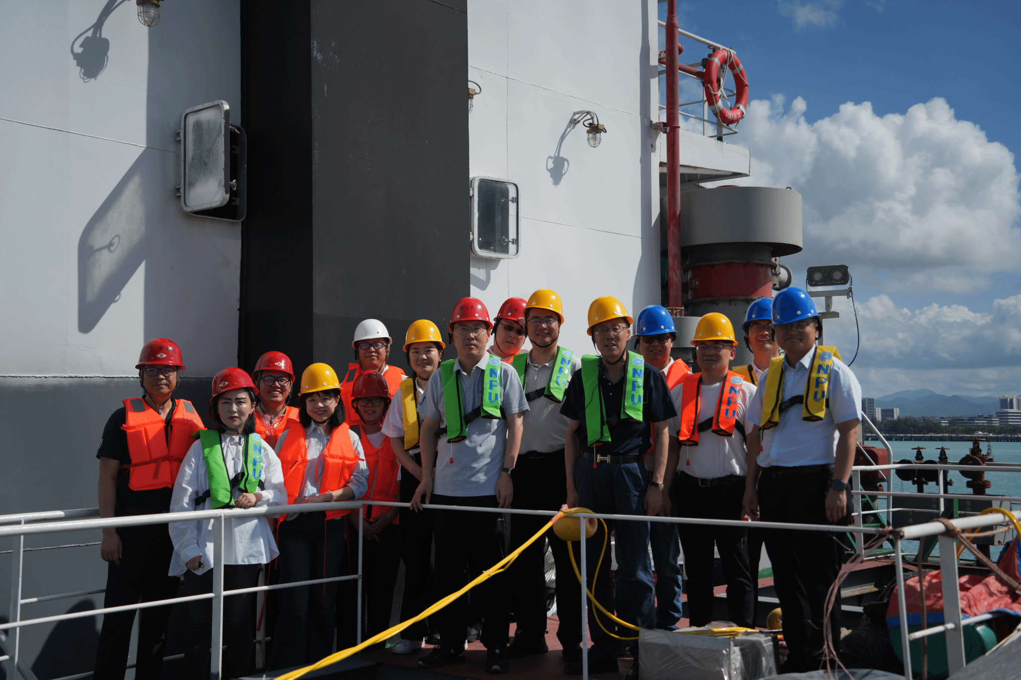 老师们先后参观南山港科考船码头、崖州湾科技城和龙鲸001号船。在某重点项目总装总调现场,项目团队的师生不惧风吹日晒,在南海高温、高湿、高盐、高腐蚀的海洋环境下,身着工作服,头戴安全帽,全神贯注地投入到实验工作中,用汗水诠释“敢为人先 攻坚克难 团结协作 无私奉献”的航海精神。站在龙鲸001号船前,看着巨轮轮廓和项目阶段性成果,学院一行真切感受到项目海试的意义和技术验证突破的威力,亲身体验到项目一线师生向深蓝远海进军,加快建设海洋强国的奋斗历程。