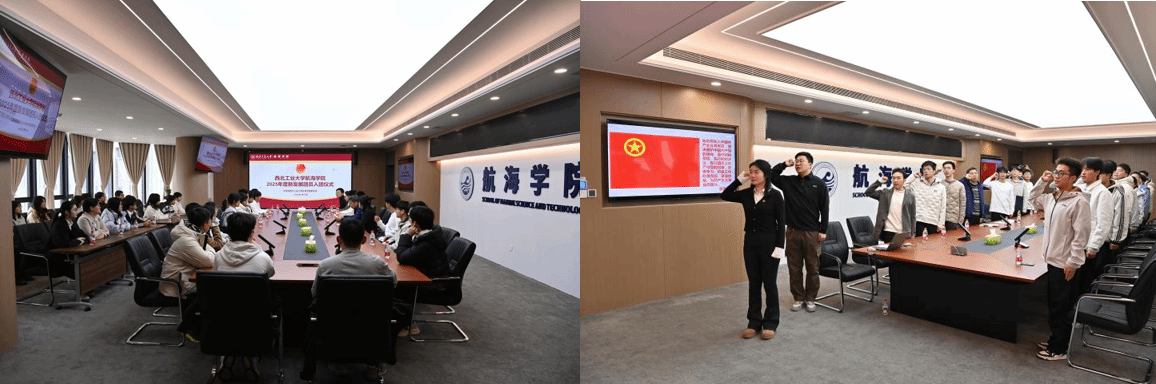 航海学院新团员入团仪式在海天苑大楼A座226会议室举行。学院党委副书记王银涛、团委书记李娅出席,2025年新发展团员全员参与,仪式由学生兼职团委副书记赵森主持。仪式在国歌声中启幕,李娅宣读新团员名单,王银涛为新团员代表颁发团员证、佩戴团徽。全体新团员面向团旗庄严宣誓,王银涛结合自身经历为新团员送上寄语、提出期许,仪式最终在嘹亮的团歌声中圆满落幕。此次仪式为团组织注入新鲜血液,也让新团员接受了深刻的理想信念洗礼。