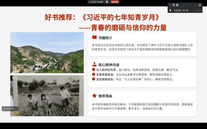2024级本科各团支部围绕“书香润心・薪火相传”主题,陆续开展红色经典读书分享会。各团支部结合自身特点精选书目,03092402团支部共读《红岩》感悟革命信仰,03072403团支部研读《乡土中国》涵养阅读习惯,03092401团支部线上分享《长征》重温峥嵘岁月,信工三班推荐《钢铁是怎样炼成的》激励青年奋进。各团支部通过朗读片段、交流感悟等形式,让同学们在阅读中汲取精神力量,既浓厚了校园书香氛围,又增强了班级凝聚力,推动红色基因代代相传。
